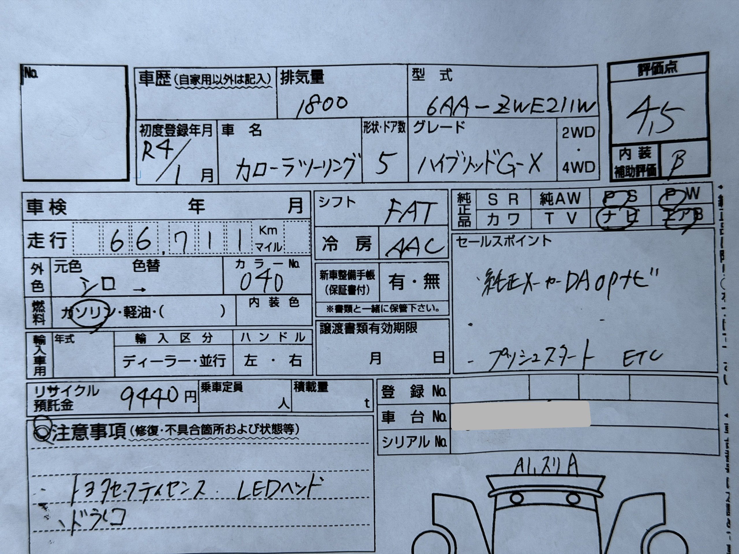 2022 Toyota Corolla TOURING ESTATE GX WHITE 1.8L PETROL HYBRID ELECTRIC AUTOMATIC 5 SEATER GRADE 4.5B